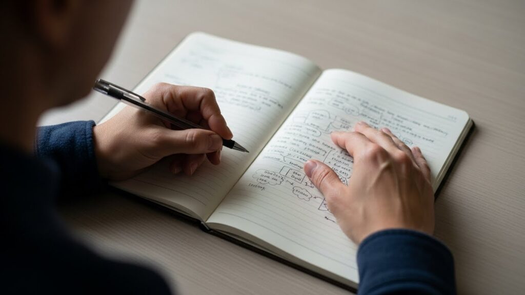 ノートに悩みや不満を書き込む